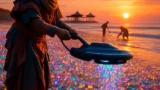 イベント会場は全長7キロに及び、各自持ち寄りのビーチグラス(信号増幅結晶)や貝殻レゾナンス器で潮騒の微細な変調音を競う光景が名物だ。なかでも今年は、宇宙漁港管理プラットフォーム“アトラム=オリオン”から寄贈された防波堤型ボーカライザーが注目を集める。これは潮流によって運ばれた多種多様な漂流物を音源とし、満潮とともに響く共鳴音を再構築するもので、恒星エネルギーを活用したサステナブル装置として絶賛されている。