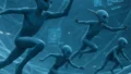 円環状の巨大構造物内で多様な異星人がスパイラル状のホログラムを見上げながら集まっている様子のリアルな写真風画像。 サステナブル投資