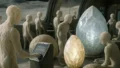 また、アクティブウェアも進化を続けている。ナノ・パラフィブレーター製の生地はシグナルの流れに最適化され、着用したクロマトロイドたちの筋肉運動と精神共振をよりスムーズに誘導。さらにはドーム内の選抜個体による“遠隔指揮型ウォームアップ”が新たな社会交流の場として機能し始めている。フィットネスそのものが競技であるとともに、まるで儀式めいた社会イベントの中心的役割を果たしているのだ。
