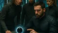 未来的な住居の中で、胞子状の子どもに寄り添いながら世話をする2人の菌糸状の親たちのリアルな場面。 子育て・教育