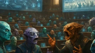 イダル彗星群に隣接するフォルグラ連合惑星圏で、政治的意思表明の主戦場であるソーシャルネット空間「ダムリンク」の“個体識別規制”を巡り、史上最大規模の議会論争が勃発した。各派閥が提唱する“アカウント魂紐(たましいひも)法”と、“匿名連帯(れんたい)協定”の正統性を巡る激しい対立は、政体構造のみならず種族間のアイデンティティ観までをも揺さぶっている。地球観察局のアナリストらによれば、フォルグラ圏のデジタル庁に類する機関「倫理署名院」の次世代ボット統制技術も議論を過熱させる一因となっているという。